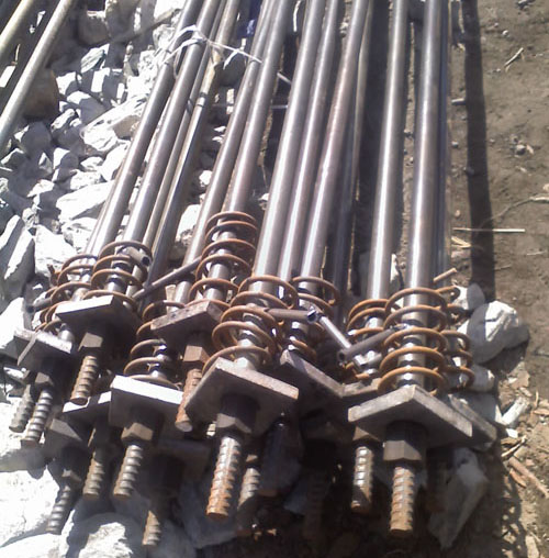 当精轧螺纹钢穿入波纹管内后,就把一个螺旋筋放入钢筋的末端,并焊接一根向上的小钢管,以此来固定螺旋筋,避免其滑落;有的施工方是在插入竖向精轧螺纹钢筋时准备浇筑混凝土的时候再把螺旋筋套在精轧螺纹钢筋上。螺旋筋的作用:在浇筑混凝土的时候能使螺纹钢筋与整个混凝土的接触面更大,能更加坚固的凝固在一起。螺旋筋的规格为:D×d×n×L=120×12×6×300(mm).根据施工方的设计不同螺旋筋的规格也不同,螺旋筋一般是采用的Q235热轧带肋钢筋制作的,也有使用10mm的圆钢制作的。